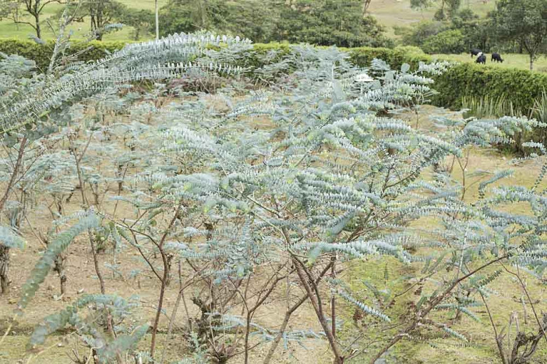The trees flower in white during the winter and produce fruits and seed pods in the spring and summer.